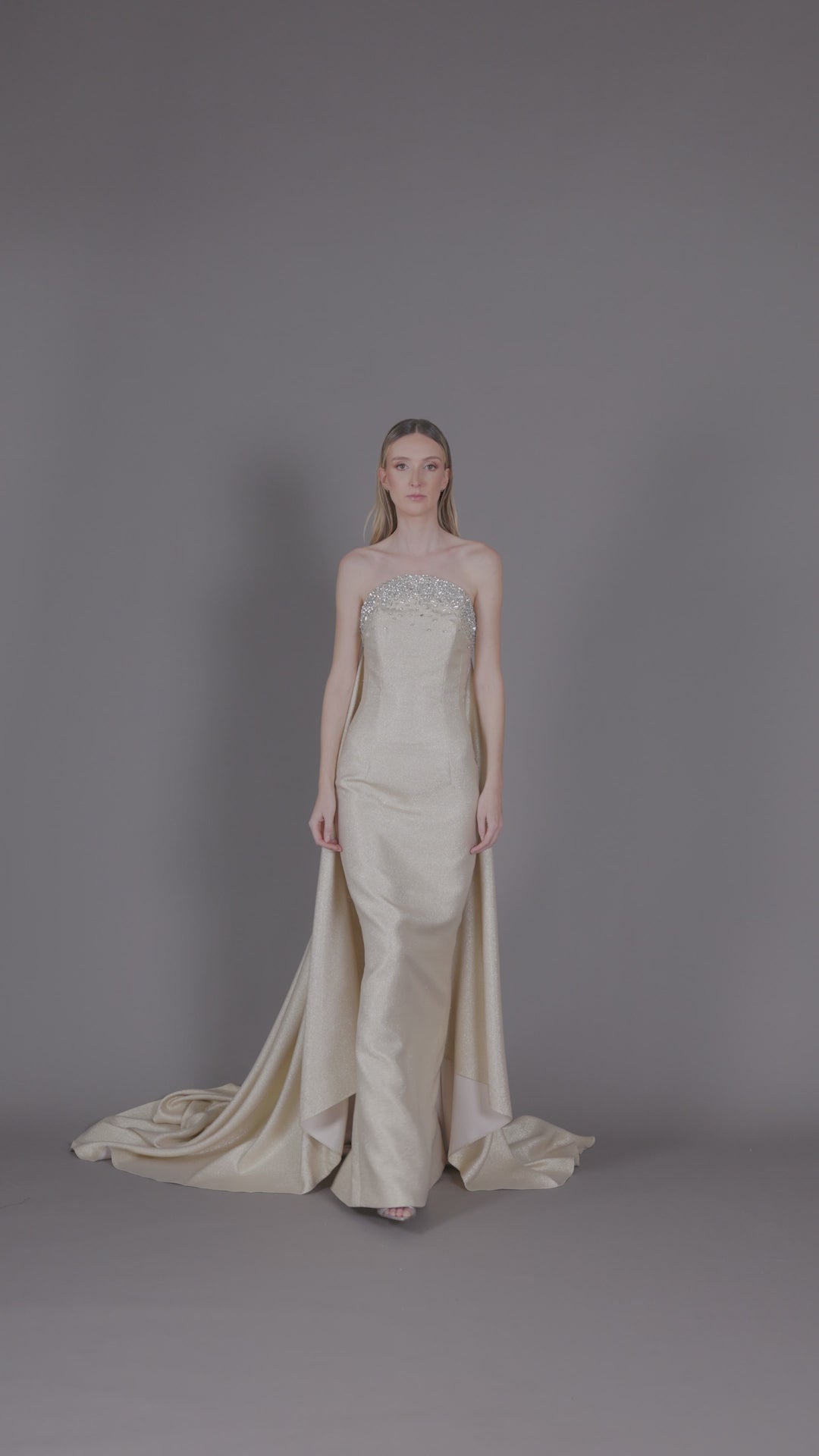 فستان لاميه مطرز مع ذيل