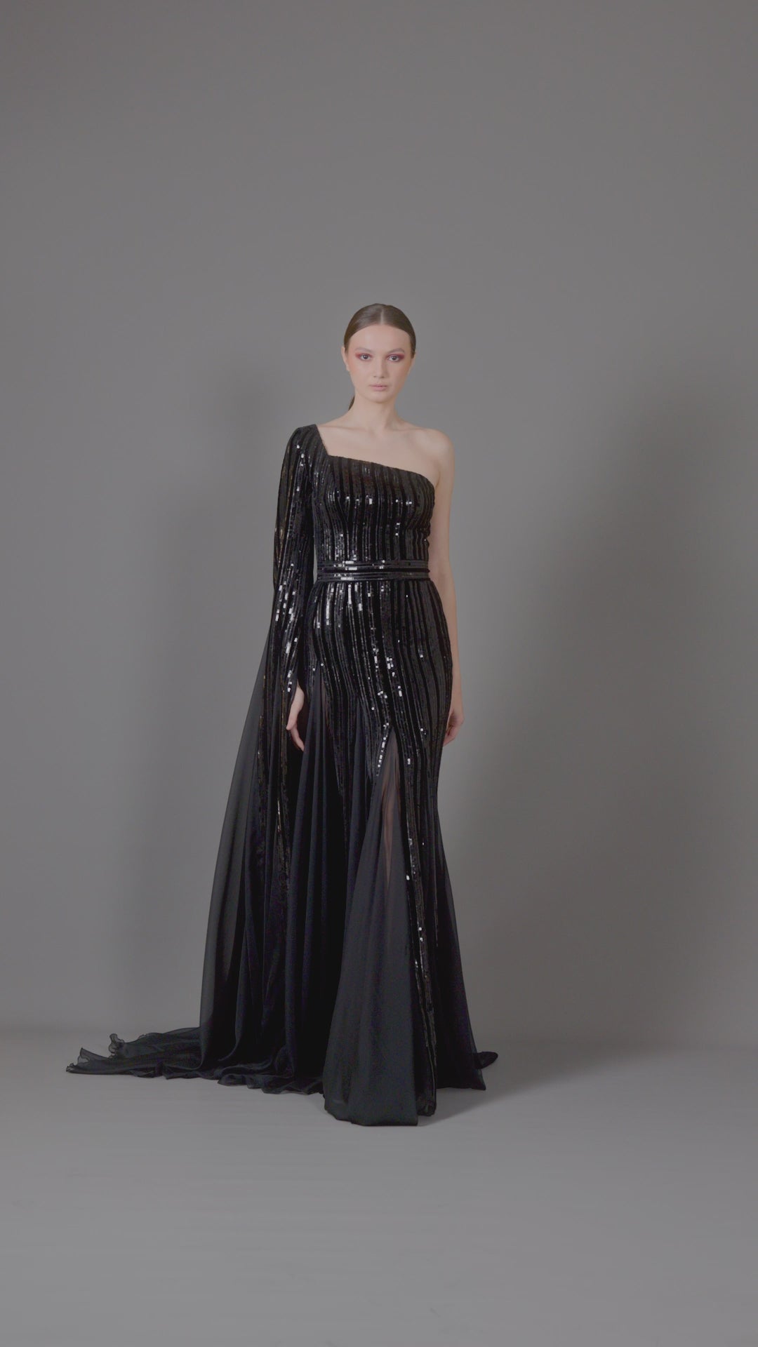 One-shoulder embroidered dress with chiffon